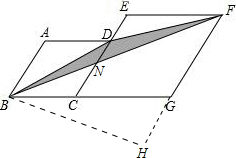 分析 如图所示:过点B作BH⊥FG,垂足为H,先证明△BCN∽△BGF,从而得到CN=2.4,于是可求得DN=1.6,然后再求得BH=5$\sqrt{3}$,从而可求得阴影部分的面积.