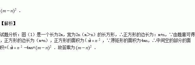 )的长方形,用剪刀沿图中虚线(对称轴)剪开,把它分成四块形状和大小都一样的小长方形,然后按图(2)那样拼成一个正方形,则中间空的部分的面积是.