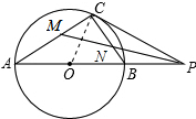 (2)先证明△OBC为等边三角形,得出∠ABC=60°,∠CAB=30°,再由PM为∠CPB的角平分线,得出∠APM=15°,根据外角求出∠CMN=45°,MC=NC=3,根据勾股定理即可求出MN.