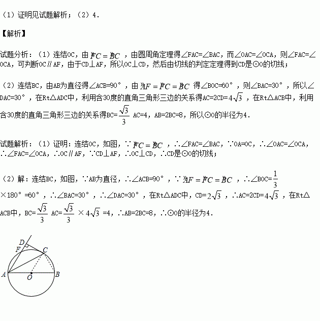 ,连接AC,AF,过点C作CD⊥AF交AF延长线于点D,垂足为D.