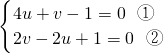 代入②,得2v-2×+1=0,