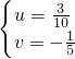 ①×2-②,得10u=3,