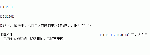 (3)为确定参加区科技节的学生人选,该校在集训后进行了校内选拔赛,最后一轮复赛,决定在甲、乙2名候选人中选出1人代表学校参加区科技节B项目的比赛,每人进行了4次试飞,对照一定的标准,判分如下:甲:80,70,100,50;乙:75,80,75,70.如果你是教练,你打算安排谁代表学校参赛?请说明理由.