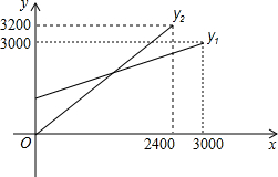 某单位急需用车,但又不准备买车,他们准备和一个体车主或一国有出租车公司签订月租车合同.设汽车每月行驶xkm,应付给个体车主的月费用为y1元,应付给国有出租车公司的月费用是y2元,y1、y2分别与x之间的函数关系图象(两条射线)如图所示,观察图象回答下列问题,问路程等于多少费用相等?费用是多少?