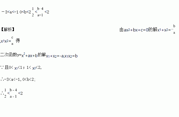 设二次函数y=x2+ax+b图像与x轴有2个交点,A(x1,0),B(x2,0);且0< x1<1;1< x2<2,那么(1)a的取值范围是___________;b的取值范围是________;则(2)