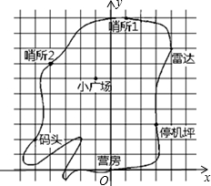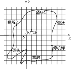 分析 (1)根据营房的坐标画出直角坐标系,然后根据点的坐标的表示方法写出雷达,码头,停机坪,哨所1的坐标;(2)利用营房为坐标原点,画出直角坐标系,然后根据点的坐标找出对应的点即可.