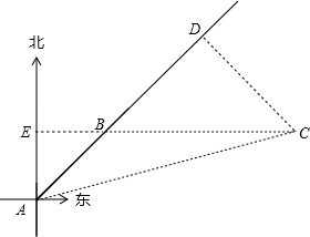 解答:解:作与正北方向平行的直线,与CB的延长线相交于点E,过点C作CD⊥AB于D.