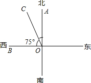 | A、点A在点O北偏东75°的方向上 |