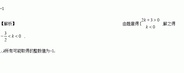 已知一次函数y=kx+2k+3的图像与y轴的交点在y轴的正半轴上,且函数值y随x的增大而减小,则k所有可能取得的整数值为____________.