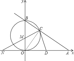 连结OC,OB是⊙M的直径,则∠ACO=90°,D为OA的中点
