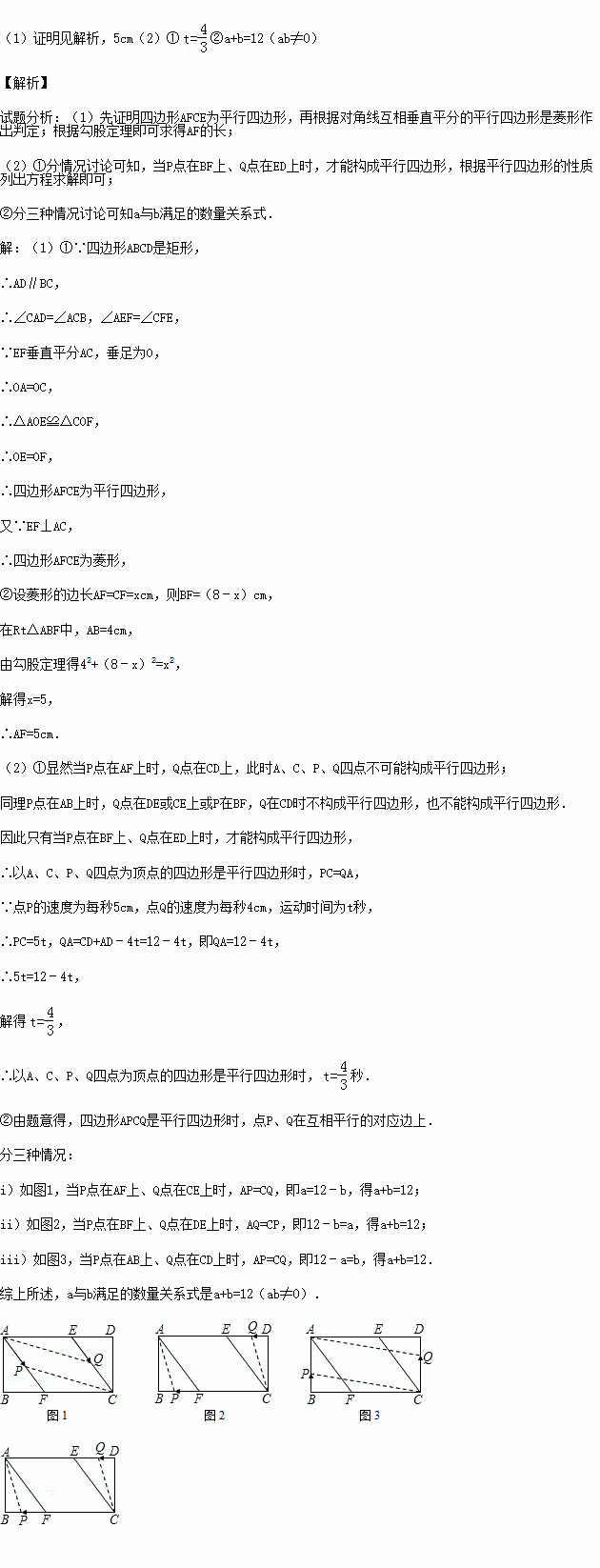 (1)如图1,连接AF、CE.求证四边形AFCE为菱形,并求AF的长;