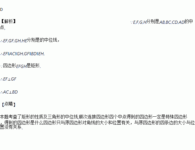 若顺次连接一个四边形的各边的中点所得的四边形是矩形,则原来的四边形的两条对角线( )
