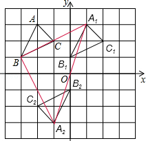 (1)按要求画图:将△ABC向右平移3个单位长度后得△A1B1C1,再将△A1B1C1绕点O旋转180°后得到△A2B2C2.![]()
