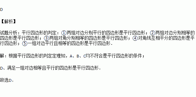 能判定四边形ABCD是平行四边形的题设是( )