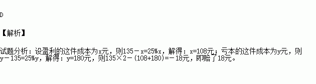 某商店有两个进价不同的计算器都卖了135元,其中一个盈利25%,另一个亏本25%,在这次买卖中,这家商店( )