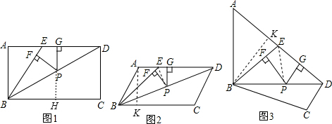 分析:(1)延长GP交BC于点H,根据矩形性质AD∥BC,求出∠CBD=∠EBD,根据角平分线性质得出PF=PH,即可得出答案;