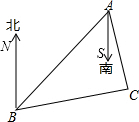 分析 (1)根据方向角的定义,即可求得∠BAS,∠CAS,∠CBN的度数,