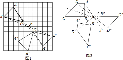 (2)在图2中,找O点的方法:连接ABCD与A′B′C′D′对应点的线段,作这些线段的垂直平分线,它们交于一点,这点就是点O,进而得出四边形A″B″C″D″.