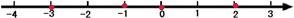 解答:解:由题中所给的坐标轴得:-3<-1<0<2.