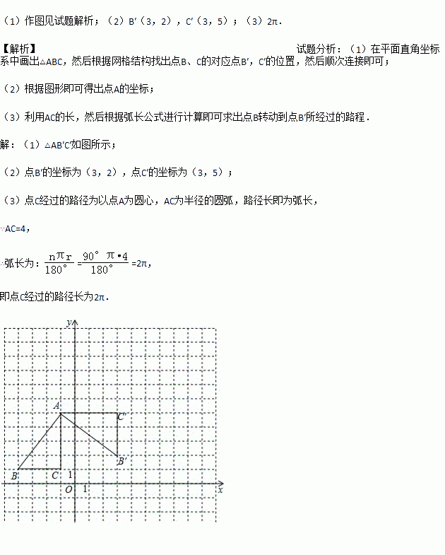 (3)求出在△ABC旋转的过程中,点C经过的路径长.