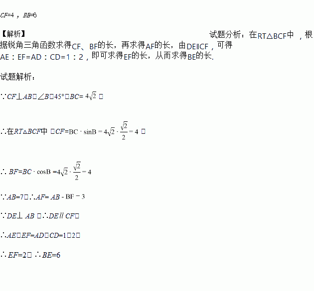 、求线段CF和BE的长度.