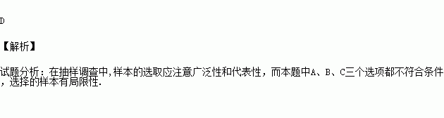 C.调查九年级全体学生 D.调查七,八,九年级各100名学生