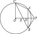 17.如图所示,已知P为⊙O外一点,PA为⊙O的切线,A为切点,B为⊙O上一点,且PA=PB,连接OP、AB相交于点D,过点O作OC⊥OP交⊙O于C,连接BC交OP于E.