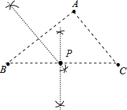 分析 连结AB、BC、AC,作AB和BC的垂直平分线,两垂直平分线相交于点P,根据线段垂直平分线定理即可得到点P到点A、B、C的距离相等,所以点P为所求.