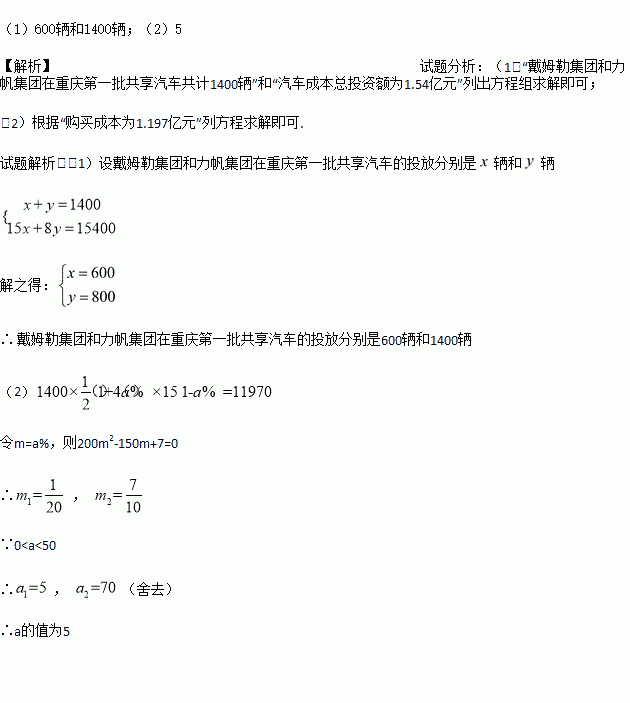 £¨1£©ÇóÁ½¼¯ÍŹ«Ë¾ÔÚÖØÇìµÚÒ»Åú¹²ÏíÆû³µµÄͶ·ÅÊýÁ¿·Ö±ðΪ¶àÉÙ£¿