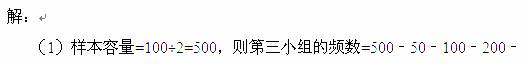 为了配合数学课程改革,某县举行了初三年级“数学知识应用”竞赛(满分100分).为了解初三年级参赛的1万名学生竞赛成绩情况,现从中随机抽取部分学生的竞赛成绩作为一个样本,整理后分成5组,绘制出频数分布直方图.已知图中从左到右的第一、第二、第四、第五小组的频数分别是50,100,200,25,其中第二小组的频率是0.2.(8分)
