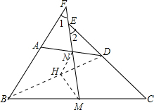分析 连接BD,取BD的中点H,连接HN、HM,根据三角形中位线定理得到∠HMN=∠2,∠HNM=∠1和∠HMN=∠HNM,证明结论.