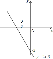 解答 解:当y=0时,x=-$\frac{3}{2}$;∴一次函数y=2x-3与x轴交点坐标为(-$\frac{3}{2}$,0).当x=0时,y=-3;∴一次函数y=2x-3与y轴交点坐标为(0,-3).其图象如图所示:.