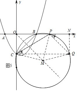 b、∠如图5中,作CQ⊥OC交⊙M于Q,根据对称性可知,BQ=CP.![]()