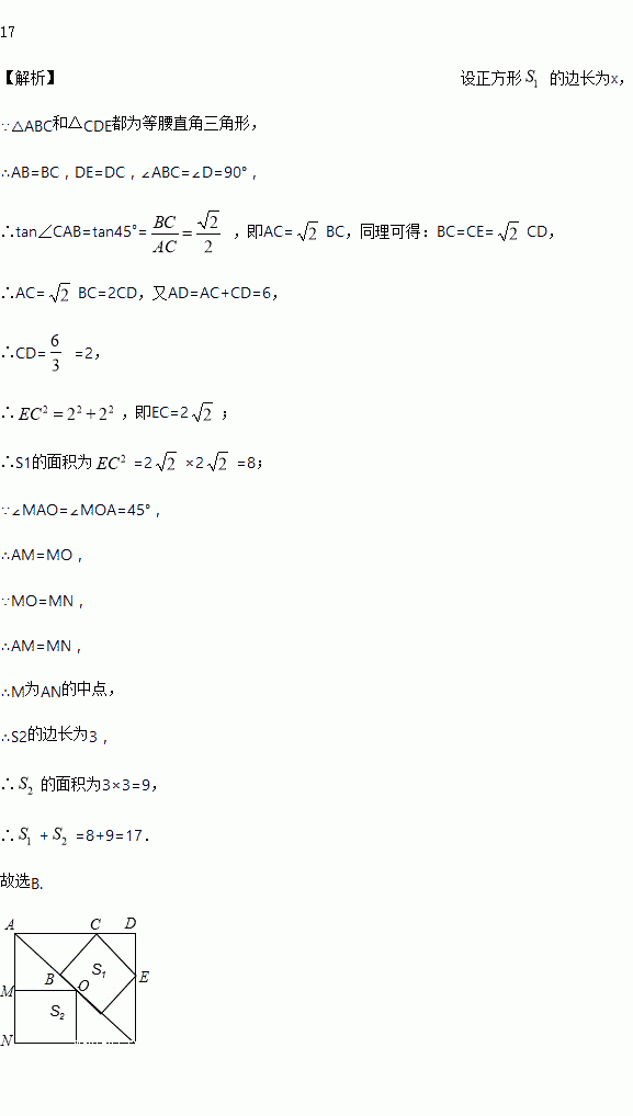 如图,是一株美丽的勾股树,其中所有的四边形都是正方形,所有的三角形都是直角三角形.若正方形A、B、C、D的边长分别是3、5、2、3,则最大正方形E的面积是( )