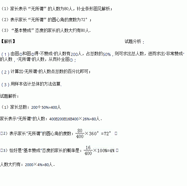 (2)求图②中表示家长“无所谓”的圆心角的度数;