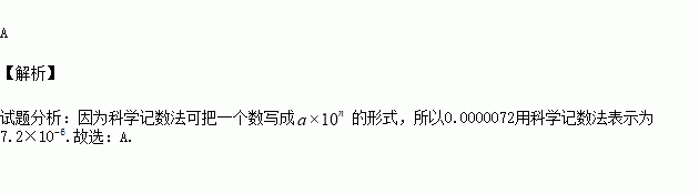 红细胞的平均直径是0.0000072m,用科学记数法表示为( )