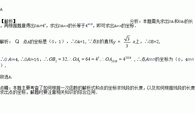 于点B,过点B作直线l的垂线交y轴于点A1;过点A1作y轴的垂线交直线l于点B1,过点B1作直线l的垂线交y轴于点A2;…按此作法继续下去,则点A2015的坐标为( )