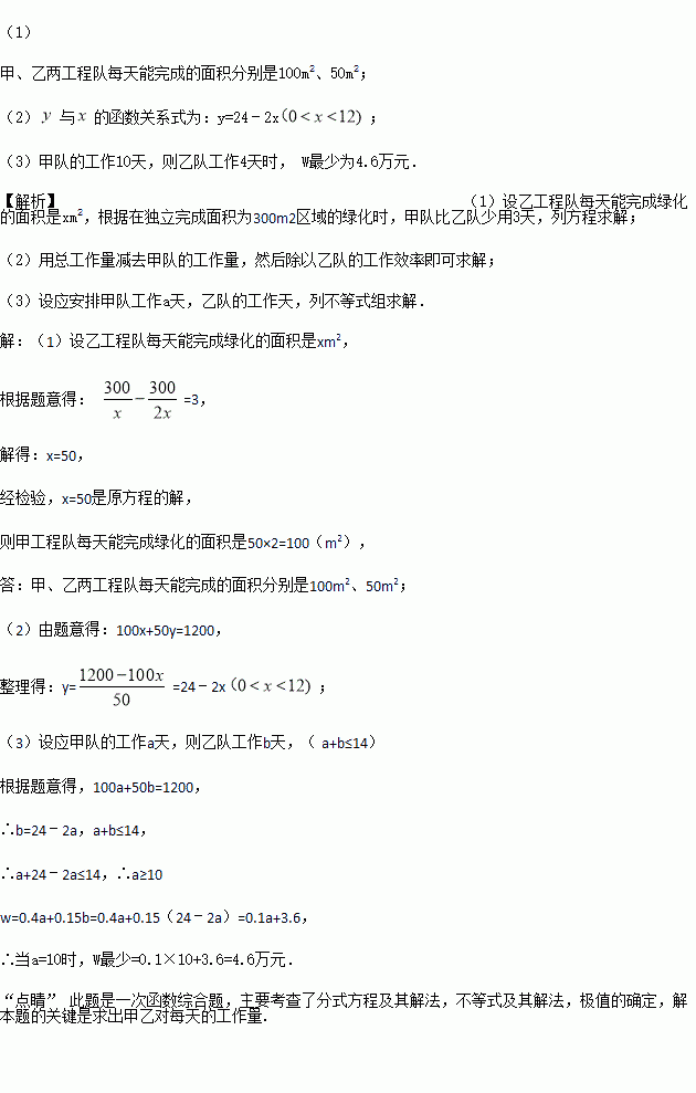 µÄÇøÓò½øÐÐÂÌ»¯£¬¾Í¶±ê£¬Óɼס¢ÒÒÁ½¸öÊ©¹¤¶ÓÀ´Íê³É£¬ÒÑÖª¼×¶ÓÿÌìÄÜÍê³ÉµÄÂÌ»¯Ãæ»ýÊÇÒÒ¶ÓÿÌìÄÜÍê³ÉÂÌ»¯Ãæ»ýµÄ