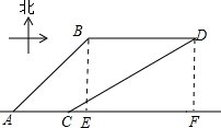 分析 分别过点B、D作AC的垂线,交AC于E、F,根据等腰直角三角形的性质求出AB,根据平行四边形的判定和性质求出DF,根据直角三角形的性质求出CF的长,求出BD,得到答案.