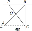 分析 (1)如图1,过C作CE⊥BC交AB于E,由∠ABC=45°,于是得到△BCE是等腰直角三角形,根据等腰直角三角形的性质得到CE=BC=3,推出△BPQ∽△ECQ,根据相似三角形的性质即可得到结论;