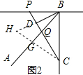 (2)如图2,过C作CH⊥AB交BD的延长线于H,交AB于G,由∠ABC=45°,得到△BCG是等腰直角三角形,由等腰直角三角形的性质得到∠BCH=45°,BG=CG,由∠BPC=3∠BCP,∠BCP+∠BPC=90°,于是得到∠BCP=22.5°,推出∠HCP=∠BCH-∠BCP=22,5°=∠BCP,于是得到△BCH是等腰三角形,根据等腰三角形的性质得到BD=DH=$\frac{1}{2}$BH,即BH=2BD,推出∠HDQ=∠HGQ=90°,求得∠H+∠DQG=∠CQG+∠DQG=180°,得到∠H=∠CQG,根据全等三角形的性质得到CQ=BH,即可得到结论.