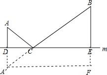 作出A点关于直线m的对称点A′,连接A′B,交直线m于点C,则C即为所求点,即当三点在一条直线上时有最小值,过A′作A′F⊥BE交BE的延长线于F,