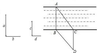 (2)首先确定两点,使它们所在直线几乎垂直河岸;用标杆大致摆出AC的位置,交河岸于C点,再作AC的平行线BD(射线)在BD上取一点D,连接CD,使AB∥CD,再测量CD的长就可以了.