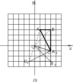 (2)△ABC绕旋转中心O逆时针方向旋转270°后,点A,B,C所对应的点为:A3(3,-1);B3(3,-3);C3(-1,-3).