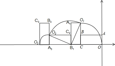 则点O运动的路径与x轴围成的面积=${S}_{扇形OC{O}_{1}}$+${S}_{△C{O}_{1}{B}_{1}}$+${S}_{扇形{B}_{1}{O}_{1}{O}_{2}}$+${S}_{△{B}_{1}{O}_{2}{A}_{3}}$+${S}_{扇形{{A}_{3}O}_{2}{O}_{3}}$