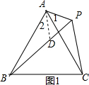 分析 (1)AB=AC,∠BAC=60°,证得△ABC是等边三角形,∠APB=∠ABC,得到∠APB=60°,又点P恰巧在∠ABC的平分线上,得到∠ABP=30°,得到直角三角形,利用直角三角形的性质解出结果.