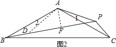 证明:如图2,以A为圆心,以AP的长为半径画弧交BP于D,连接AD,过点A作AF⊥BP交BP于F,