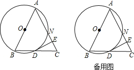 15.如图,在△ABC中,AB=AC,以O为圆心,OB为半径的圆经过点A,交AC于点N,交BC于点D,过点D作DE⊥AC,垂足为点E.