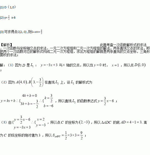 如图,直线l1的解析表达式为y=-3x+3,且l1与x轴交于点D,直线l2经过点A,B,直线l1,l2,交于点C.