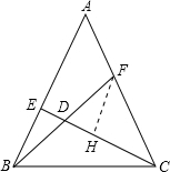 分析:过F作FH∥AB交CE于H,首先证明△BED≌△FHD(SAS),得FH=BE;再证明△CFH∽△CAE,得到HF:AE=CF:AC,由已知可得CF=AE,AF=BE=HF,设AC=BA=1,AE=x,代入相似比中,即可解得x,即可得解AE:AF.